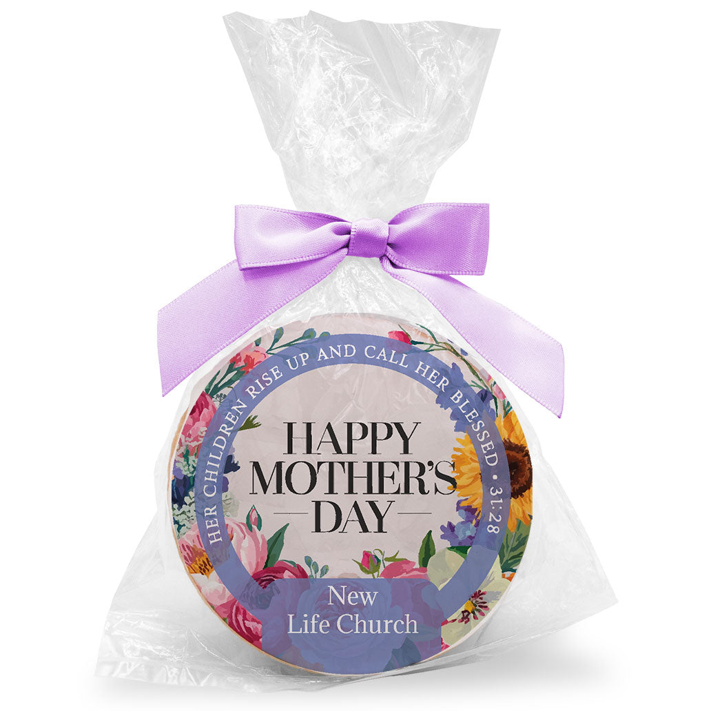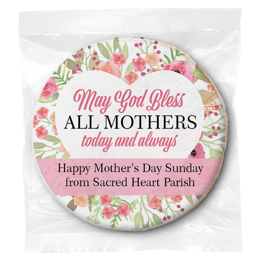 - Individually wrapped 3 inch custom-printed sugar cookies.