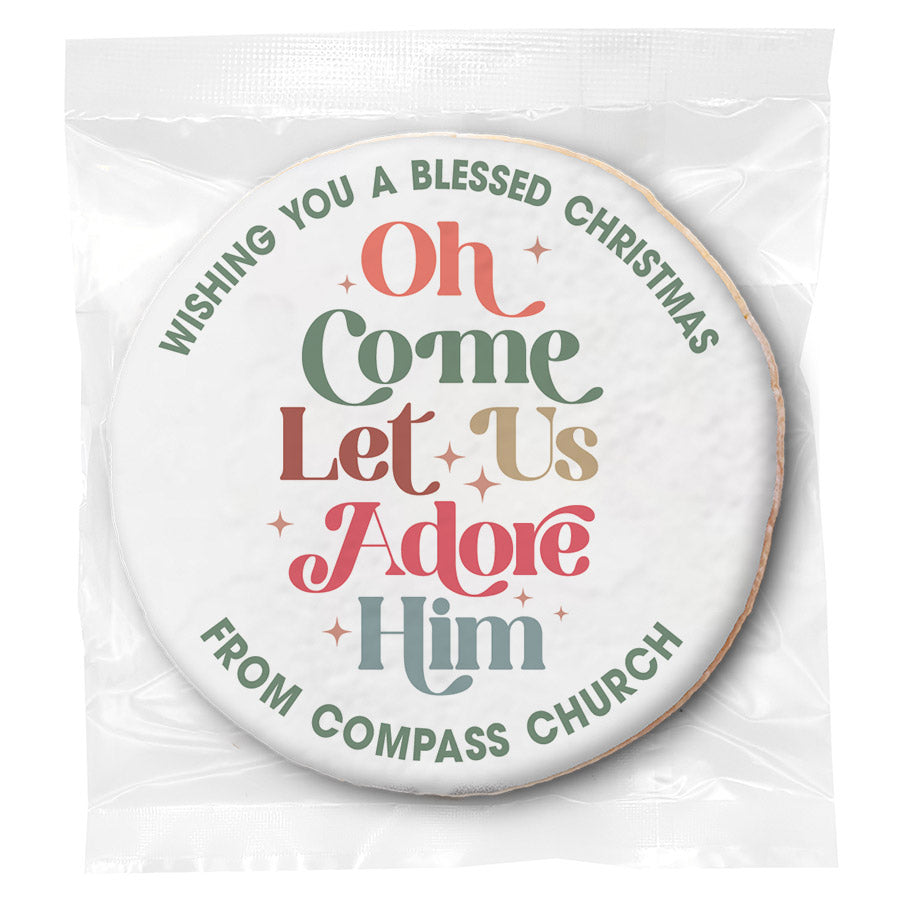 - Individually wrapped 3 inch custom-printed sugar cookies.