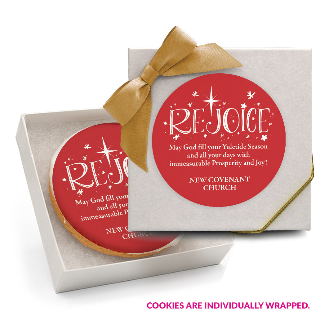 - Individually wrapped 3 inch custom-printed sugar cookies.