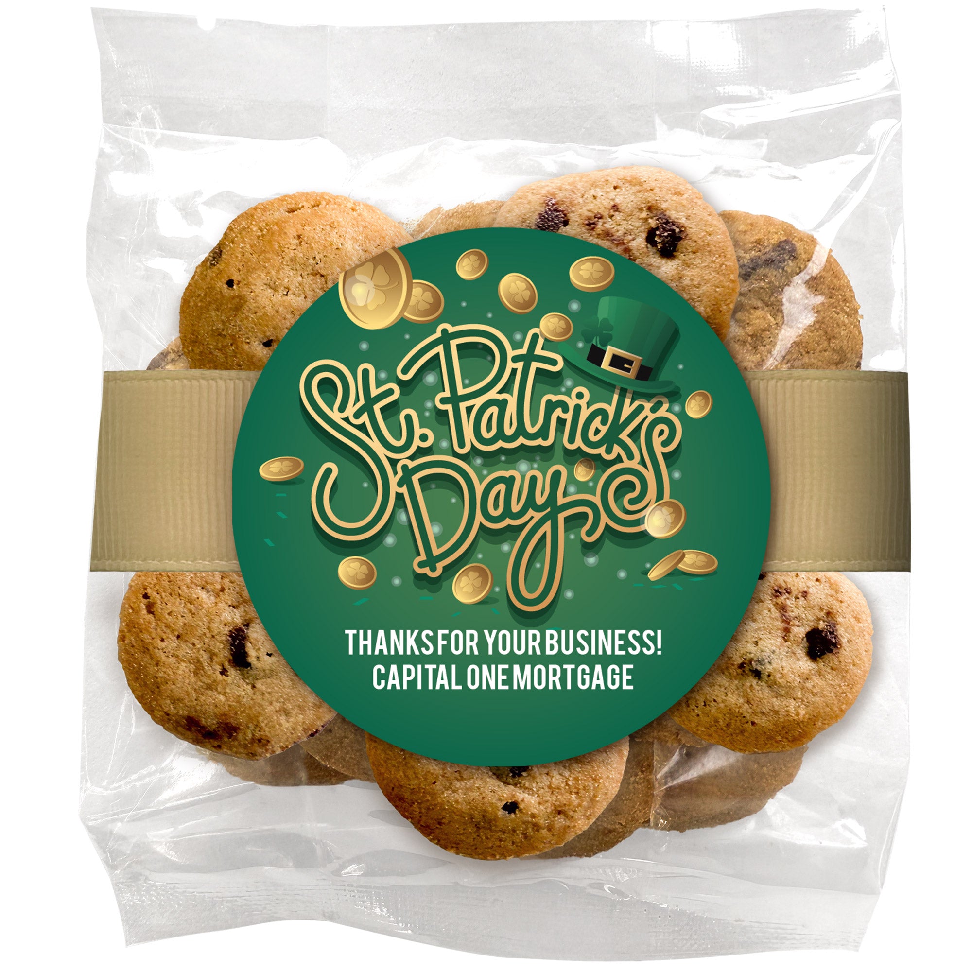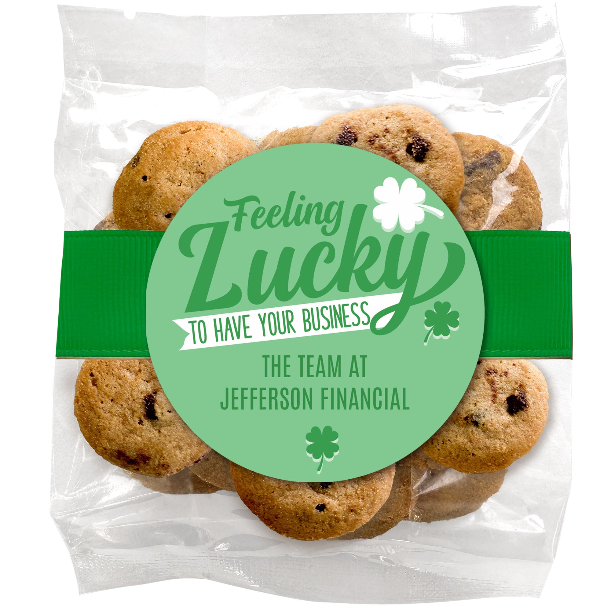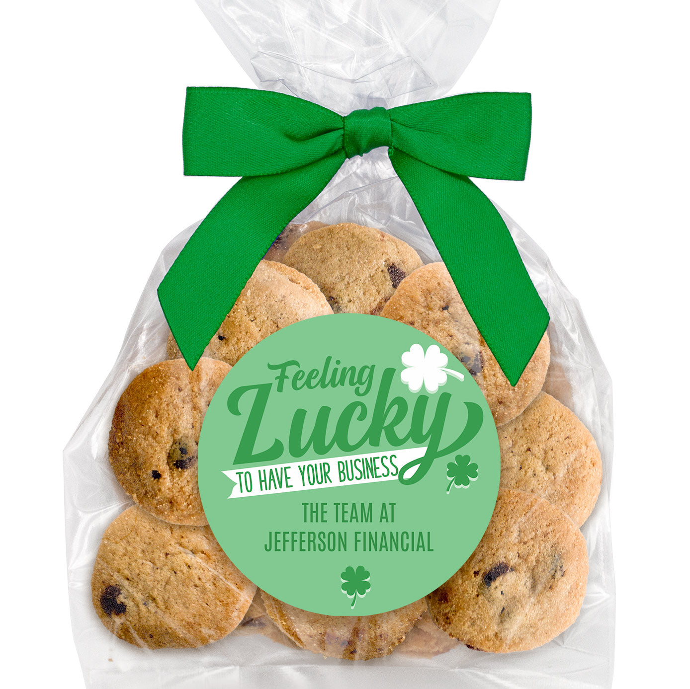 Feeling Lucky to have your Business - Personalized Direct Print On Round Sugar Cookie w/ Gift Bag & Matching Bow