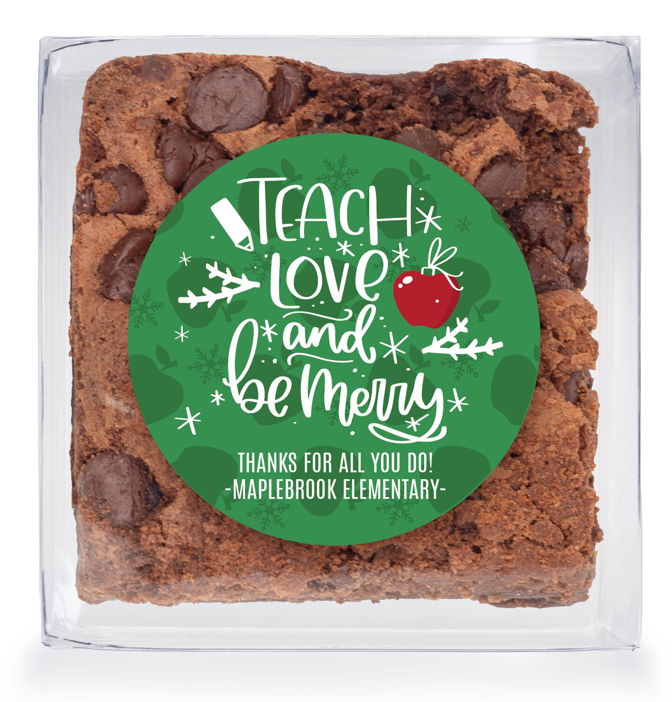 Teach, Love and Be Merry - Chocolate Chip Fudge Brownies W/Full Color Personalized Sticker