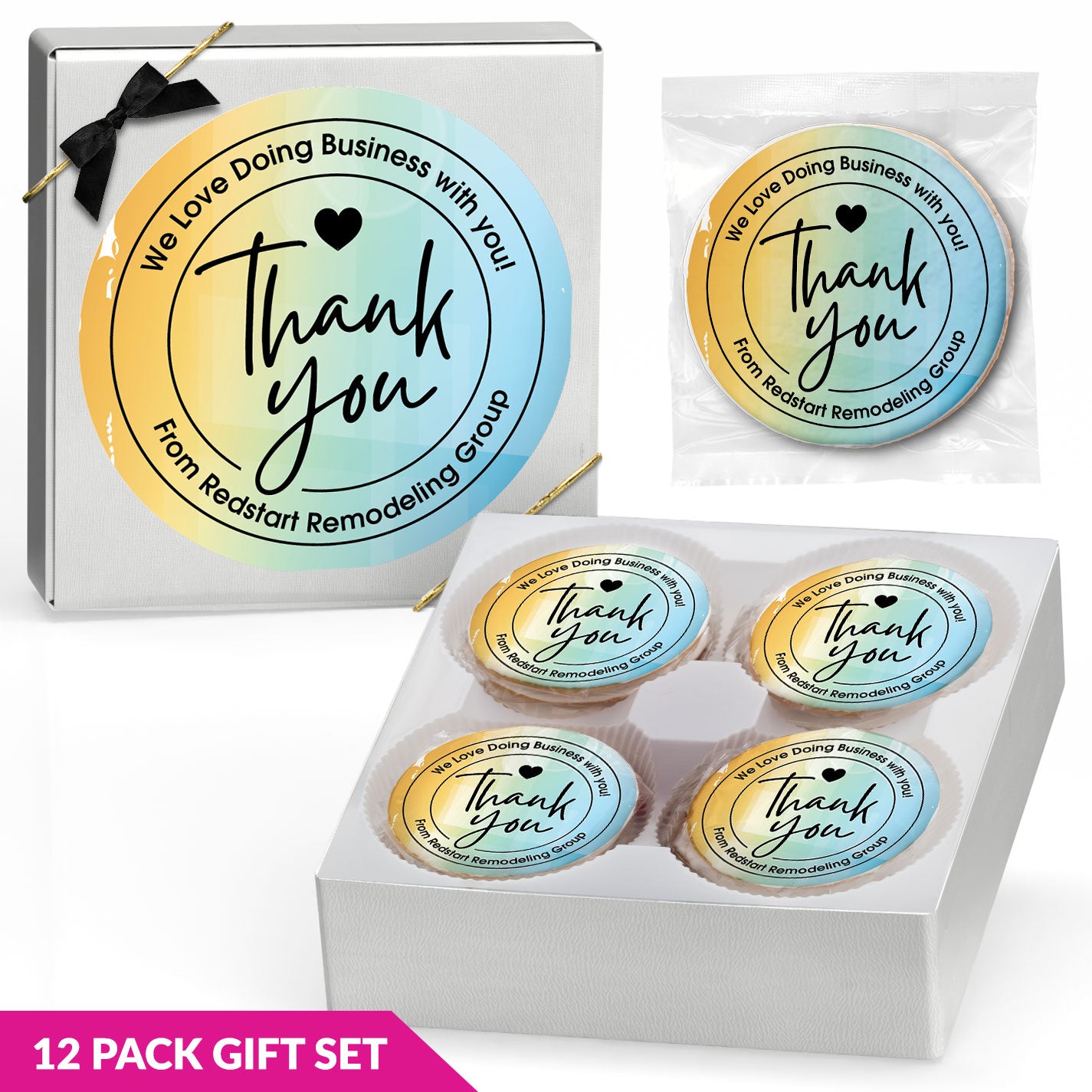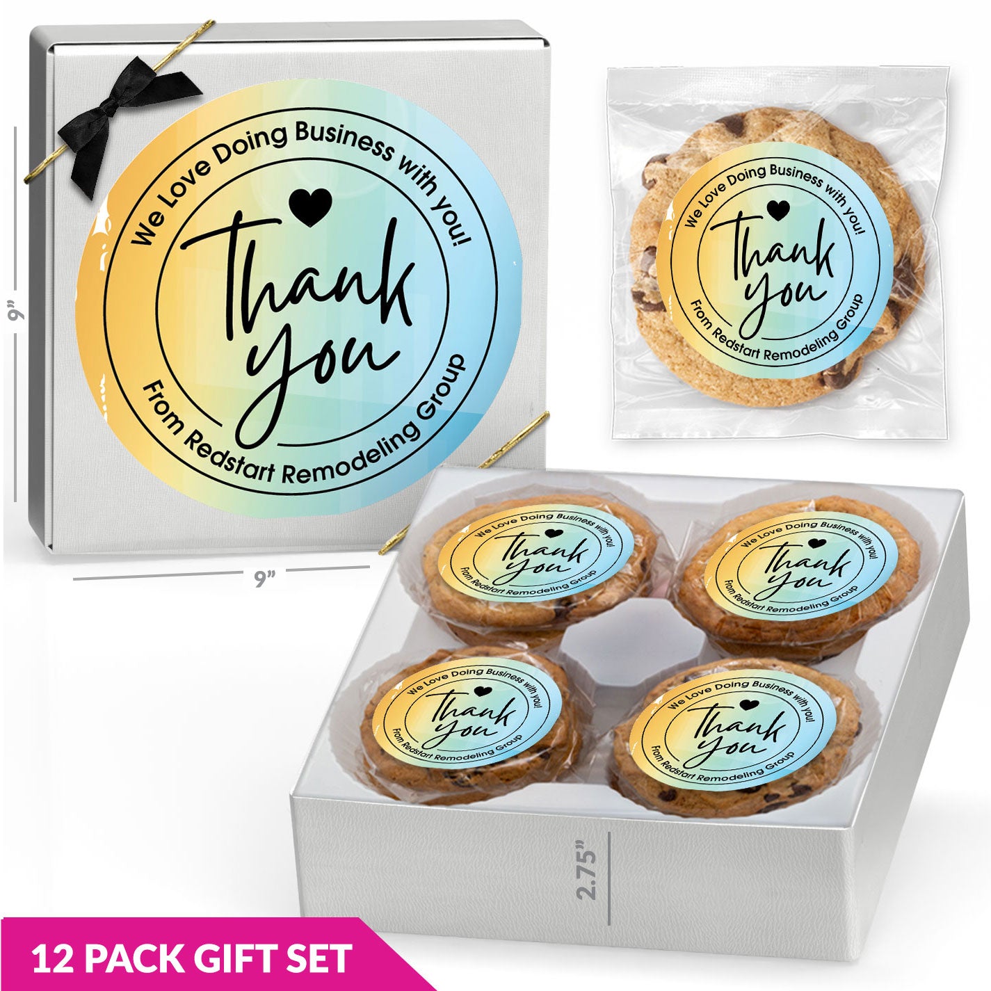 Thank You Business Message - Gourmet Chocolate Chip or Variety Pack w/ Full Color Personalized Sticker Gift Set