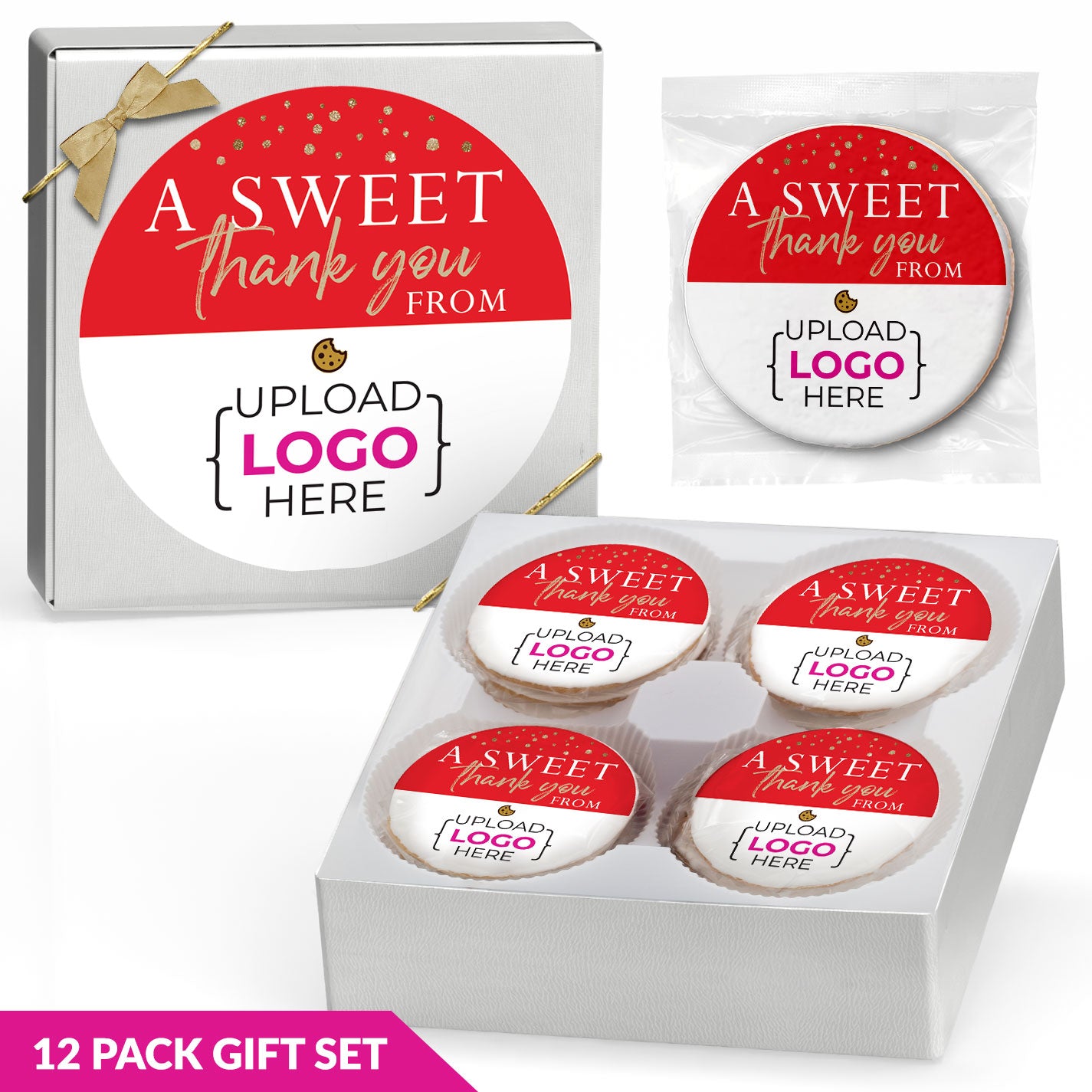 A Sweet Thank You from Logo Upload (Any color) - Personalized Direct Print On Round Sugar Cookie w/ Matching Personalized Favor Box, Sticker & Bow Choice