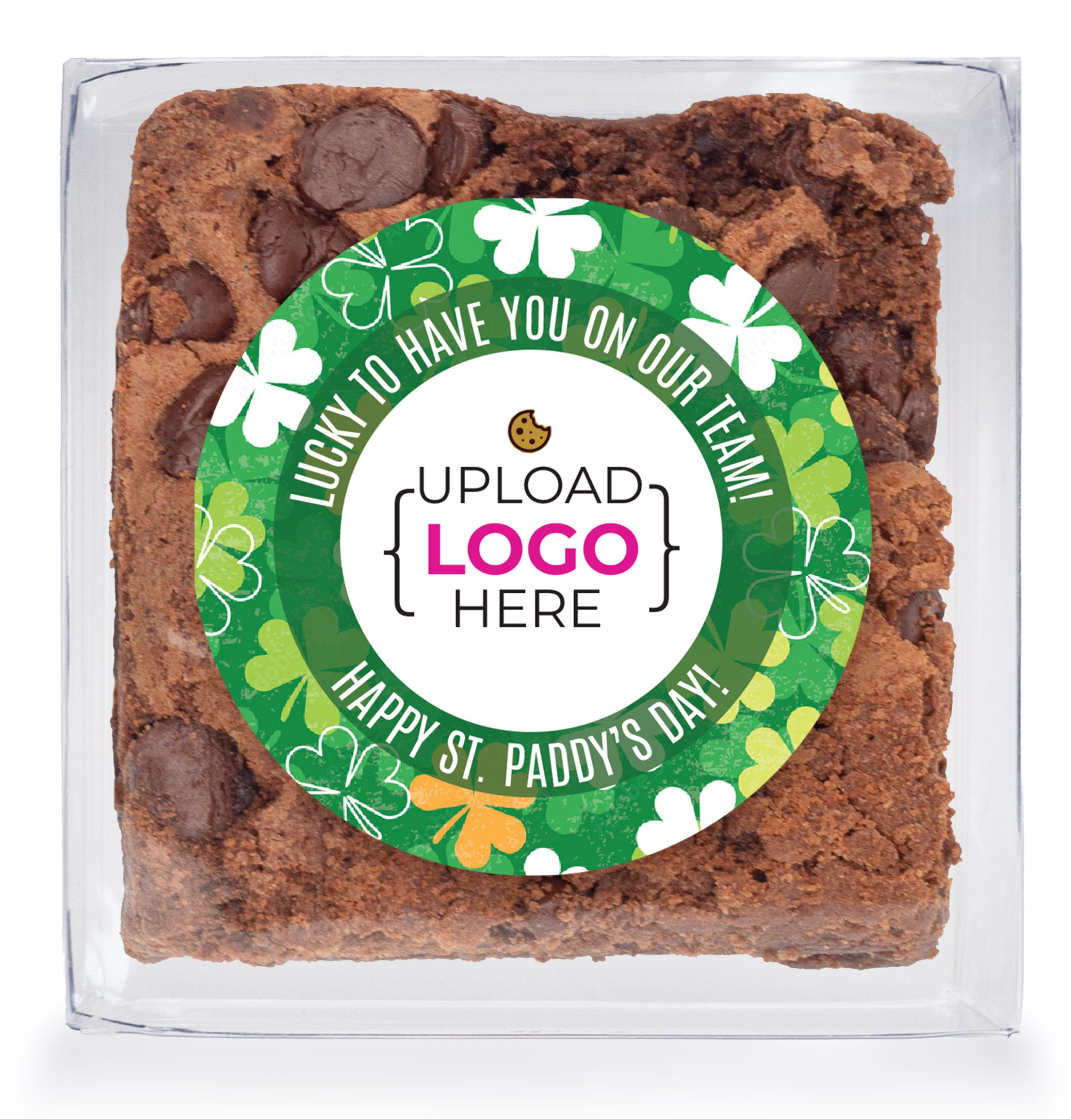 Shamrock Pattern Logo Upload - Chocolate Chip Fudge Brownies W/Full Color Personalized Sticker