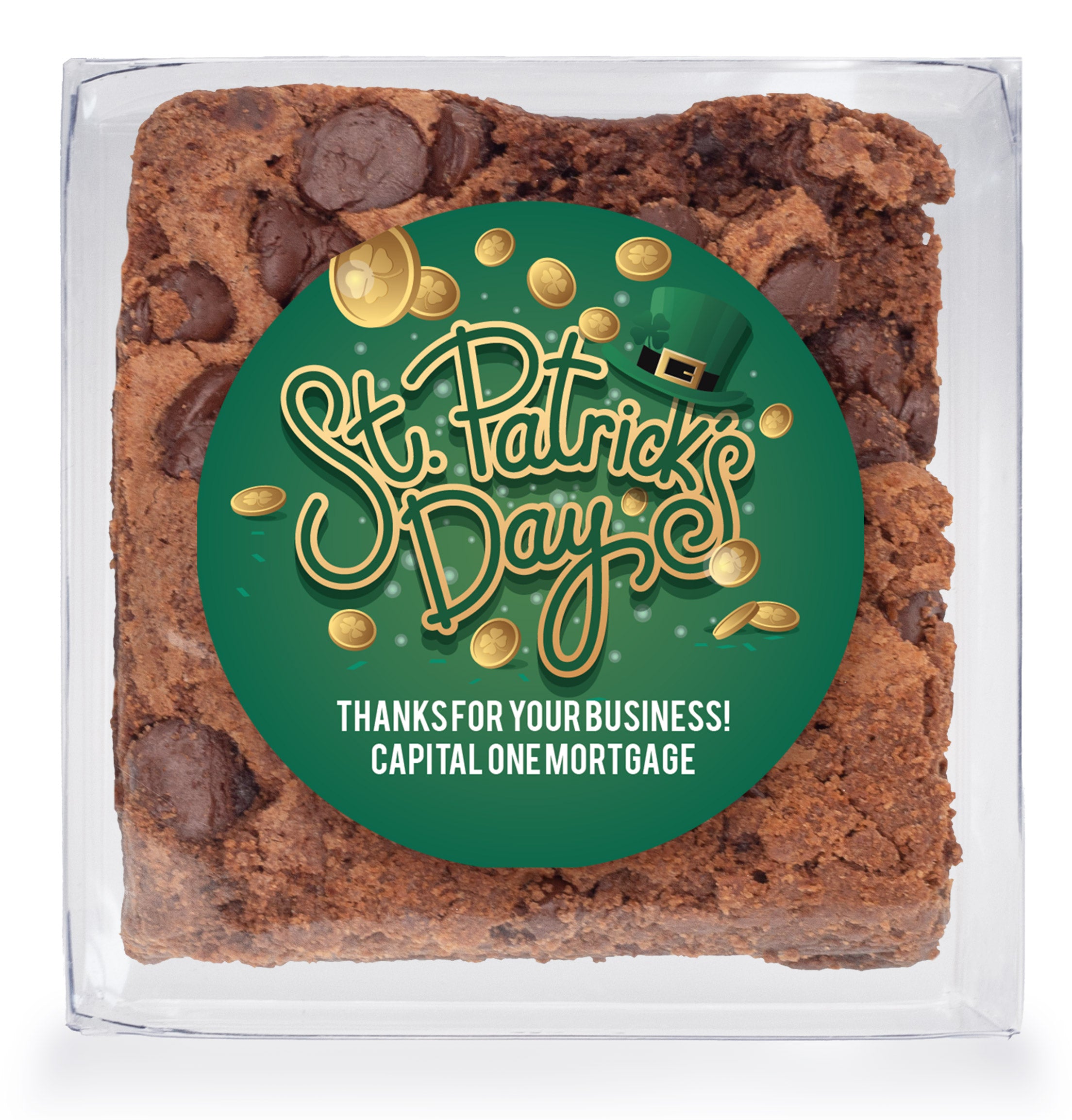 St. Patricks Day Gold Coins - Chocolate Chip Fudge Brownies W/Full Color Personalized Sticker