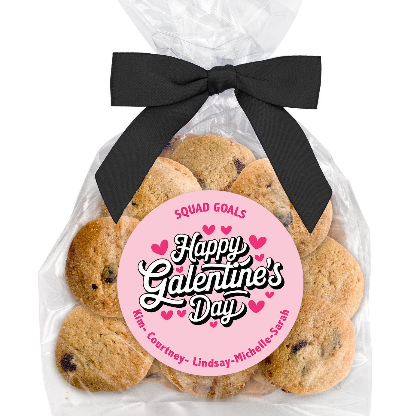 Happy Galentines Day - Bite-Sized Chocolate Chip Cookies (2 oz., approx. 14 cookies) W/ Full Color Custom Sticker & Ribbon