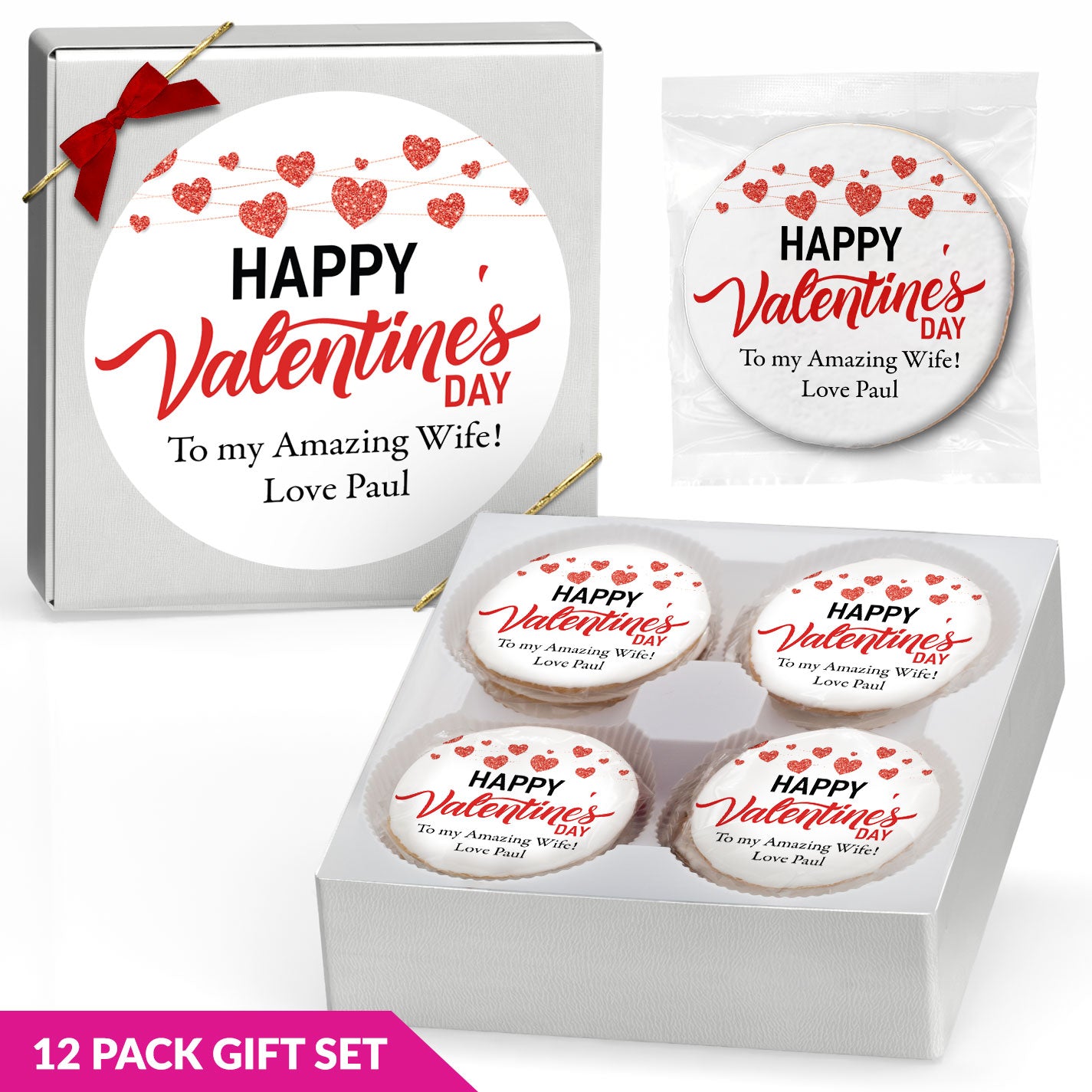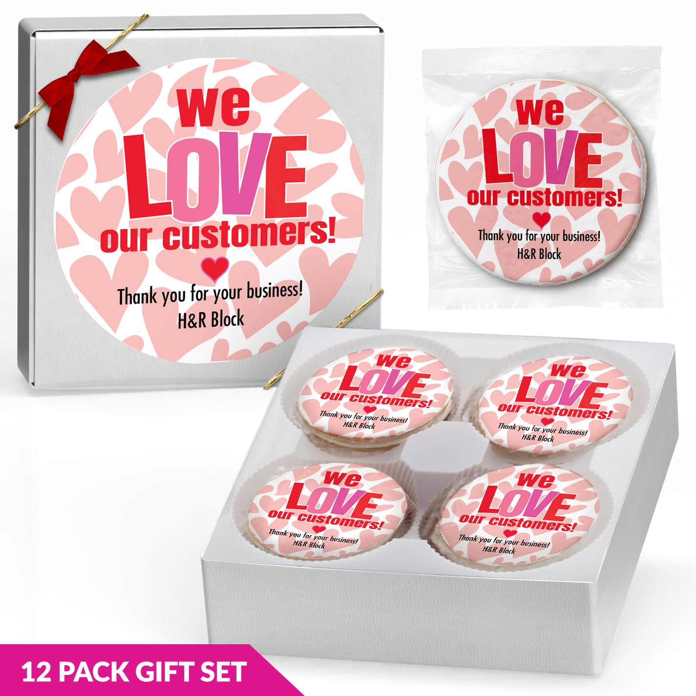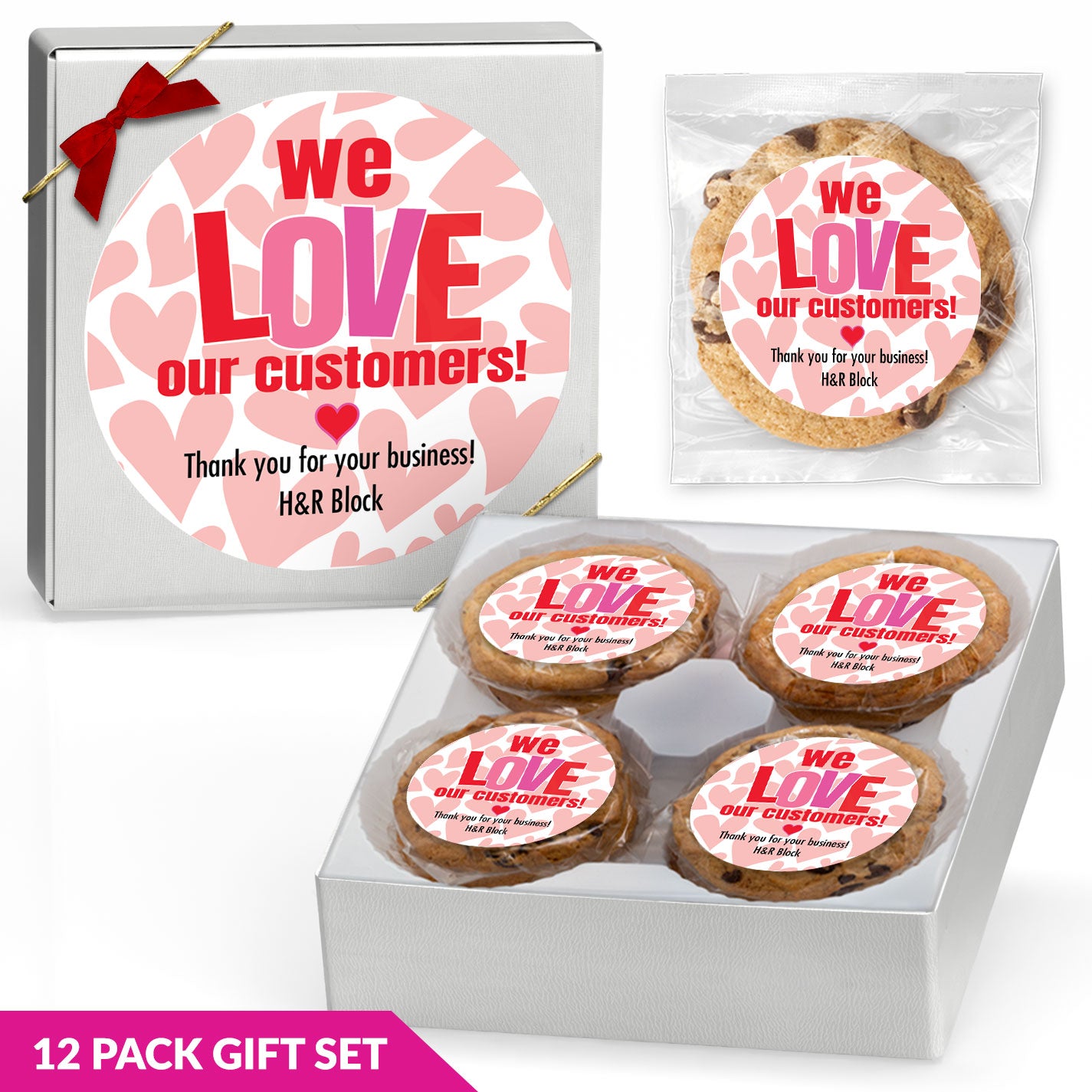 Celebrate February's sweetest holiday with our irresistible Valentine's Day cookies! Our signature cookie recipes yield perfect treats for expressing your affection. Choose from royal icing sugar cookies with direct-print technology or a variety of gourmet dough flavors including chocolate chip, red velvet, and butter-rich options. Every Valentine cookie is individually wrapped and can be customized with your personal business (or personal) message, photo, or company logo in just minutes.