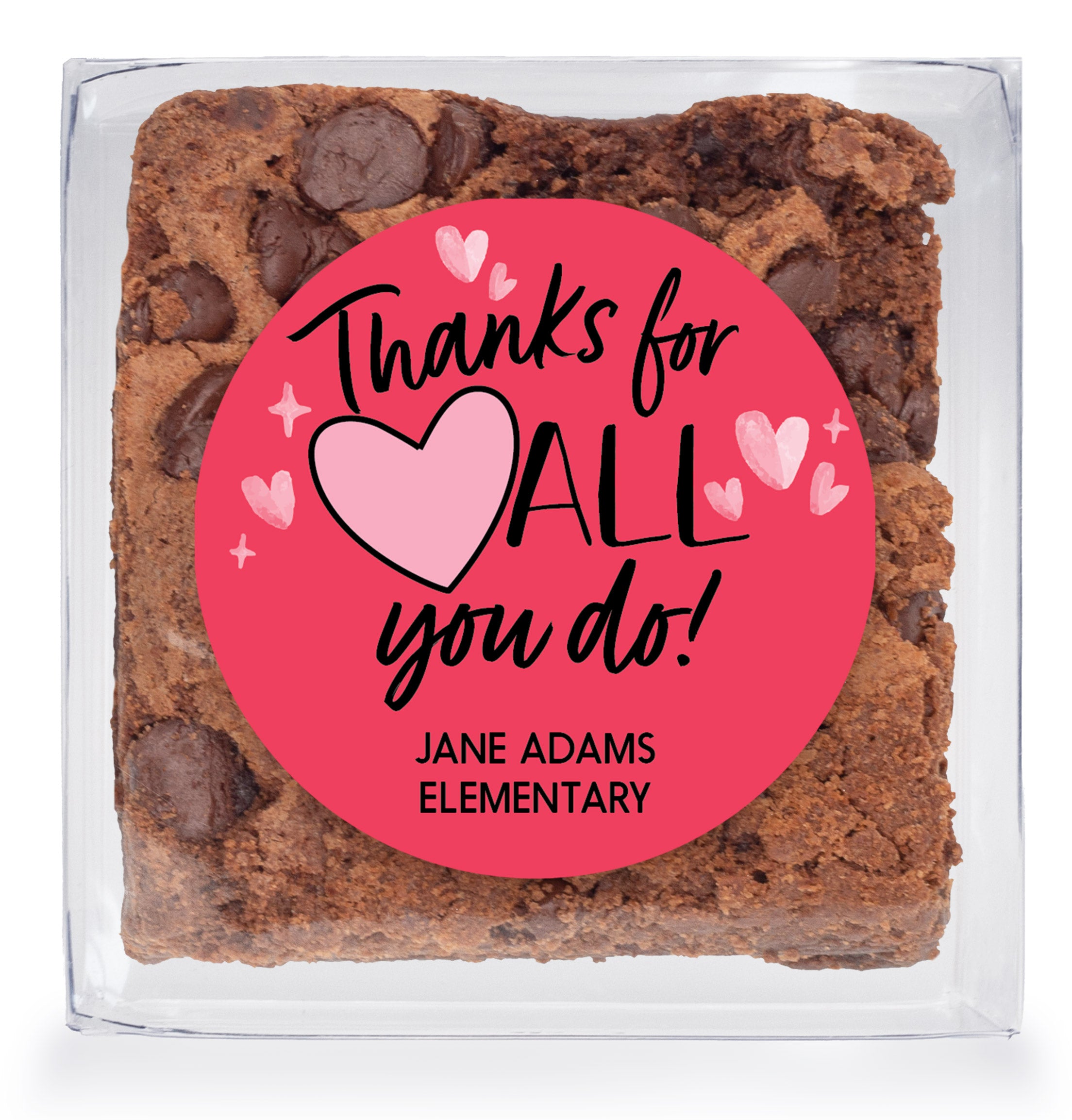 Thanks for all you do Valentines - Chocolate Chip Fudge Brownies W/Full Color Personalized Sticker