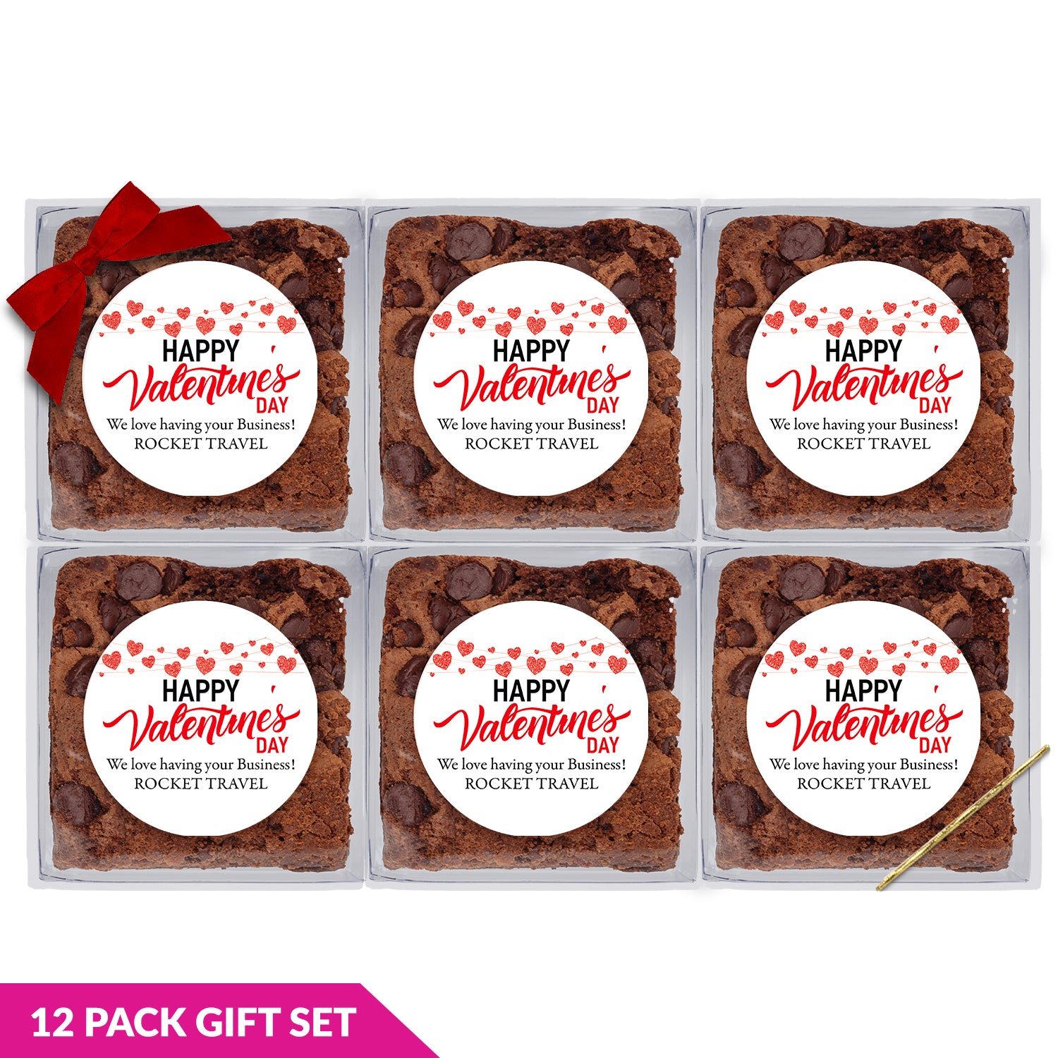 Happy Valentines Day From Logo - Chocolate Chip Fudge Brownies W/Full Color Personalized Sticker