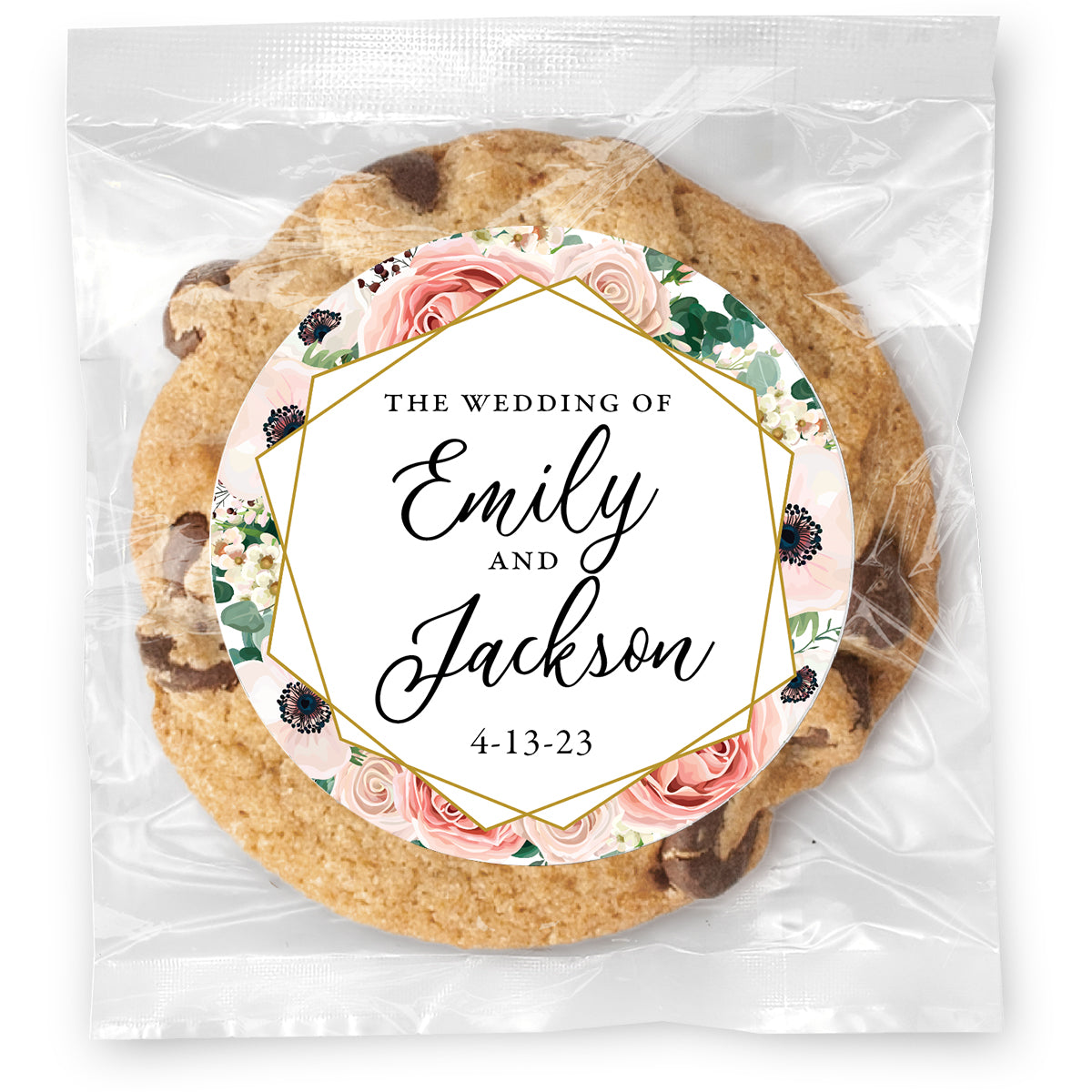 Personalized Wedding "Pastel Floral Frames" - Direct Print on Round Sugar Cookies: Enhance your wedding decor with our personalized cookies featuring pastel floral frames design direct printed on round sugar cookies, ideal for springtime weddings or garden-themed celebrations.