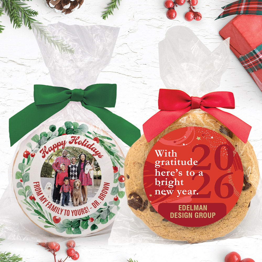 Bring joy to your holiday season with custom Christmas cookies that are as fun to give as they are to eat. Great for friends, family, or coworkers and more. We bake our holiday cookies fresh and wrap them individually, ready to spread joy. Bakers carefully craft every cookie with high-quality ingredients, delivering soft, flavorful goodness in every bite.