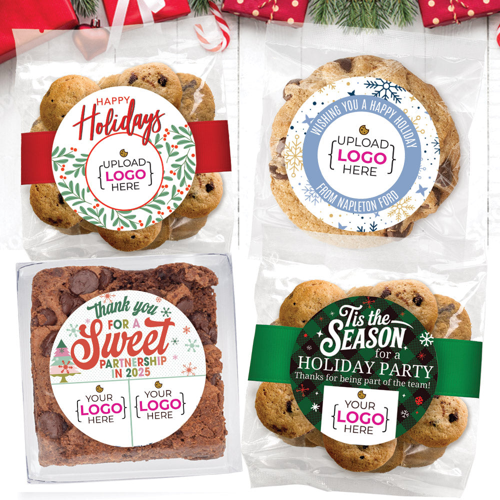 Make this holiday season extra special with our personalized gourmet cookie, sugar cookies and brownie gift sets. Share the joy of delicious cookies with your loved ones, clients or colleagues, and create sweet memories that will leave a lasting impression. Each cookie impresses with its design, ensuring your personalized Christmas Cookies look as amazing and taste even better.