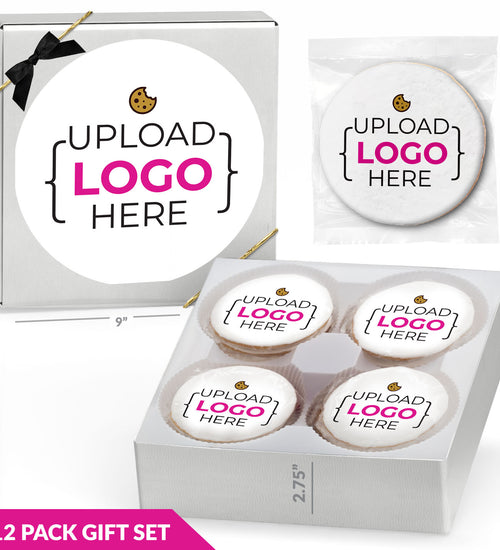 Enjoy 12 individually wrapped, custom-printed sugar cookies—freshly baked with premium ingredients. Each 3" cookie features your design printed on royal icing with FDA-approved edible ink and comes boxed with a matching personalized sticker.