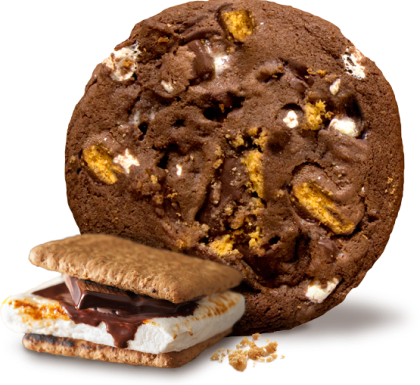 Gather around & enjoy this delicious oversized cookie without the campfire! Gooey marshmallows are blended into our chocolate cookie dough then loaded with HERSHEY’S® MINI KISSES, chocolate chunks and graham crackers.