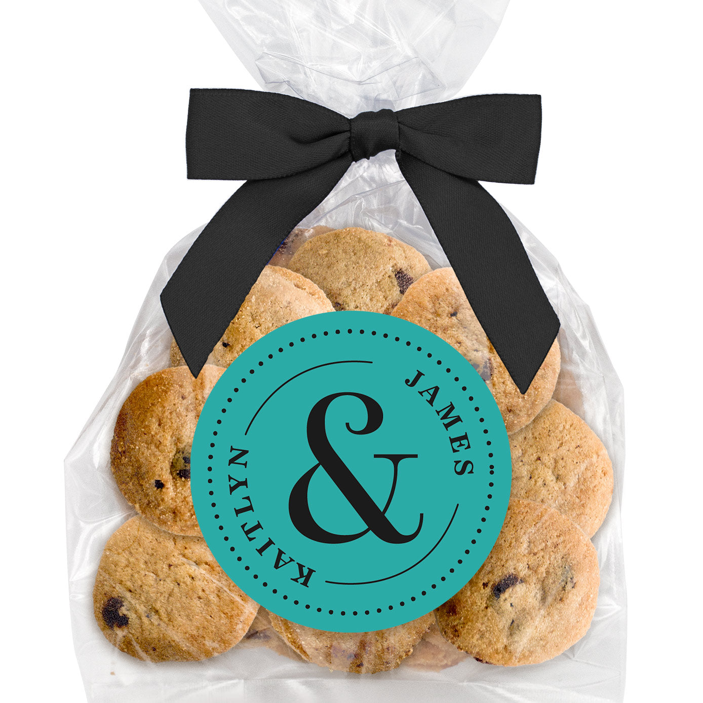 Ampersand Monogram - Bite-Sized Chocolate Chip Cookies (3 oz., approx. 24 cookies) W/ Full Color Custom Sticker & Bow