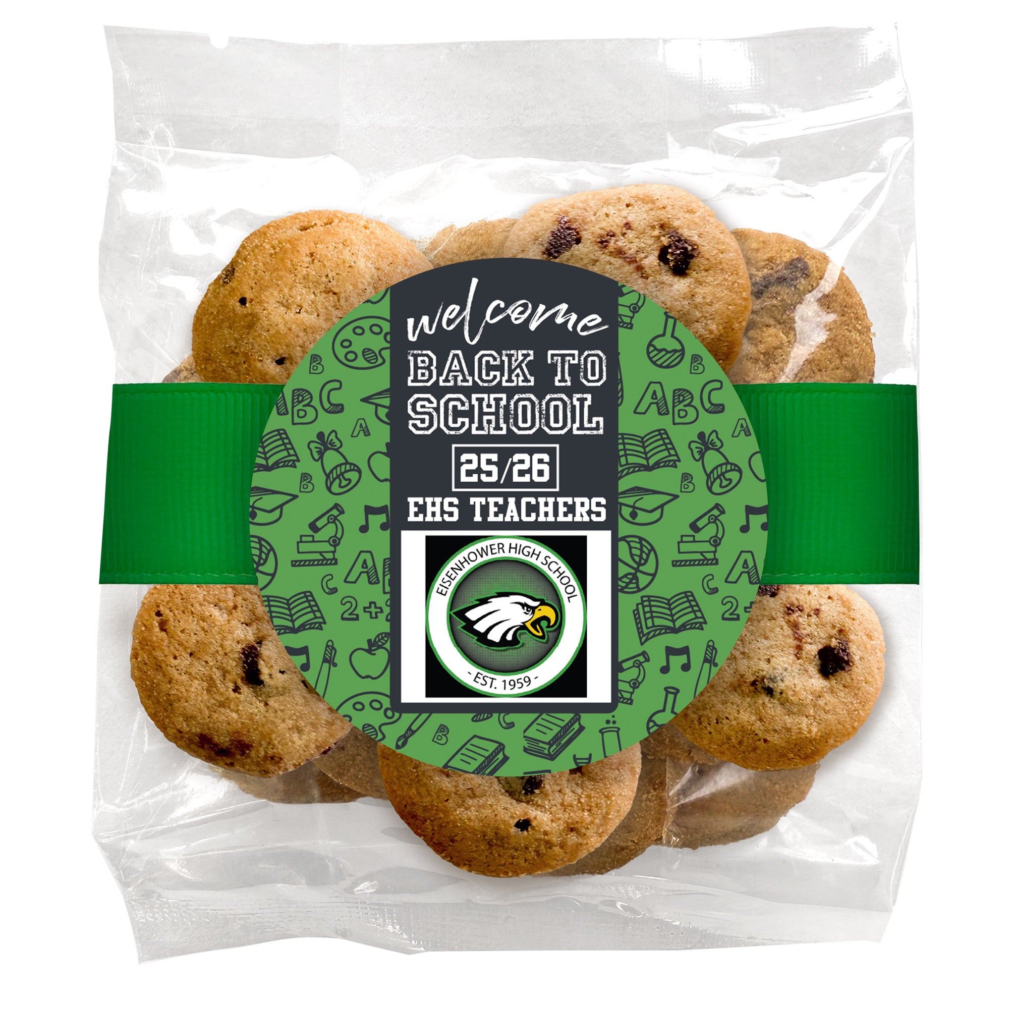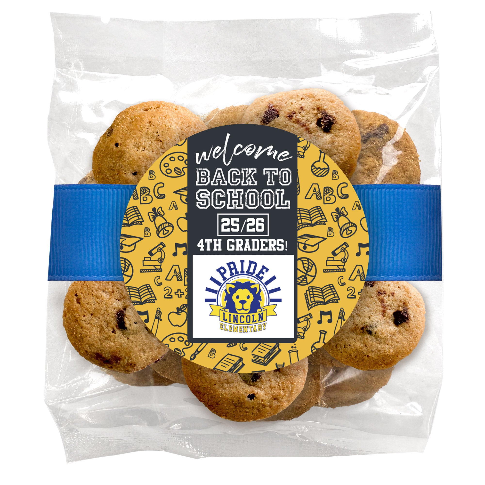 Bite-Sized Chocolate Chip Cookies (2 oz., approx. 16 cookies) W/ Full Color Custom Sticker & Ribbon - Welcome Back to School - Logo Upload