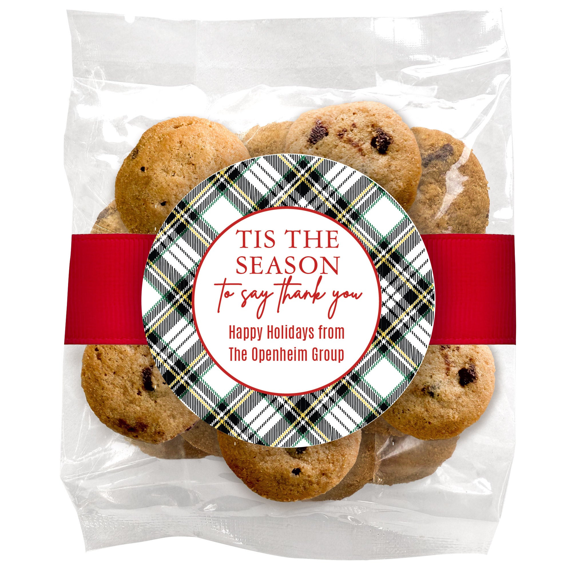 Bite-Sized Chocolate Chip Cookies (2 oz., approx. 16 cookies) W/ Full Color Custom Sticker - Tis the season to say Thank You
