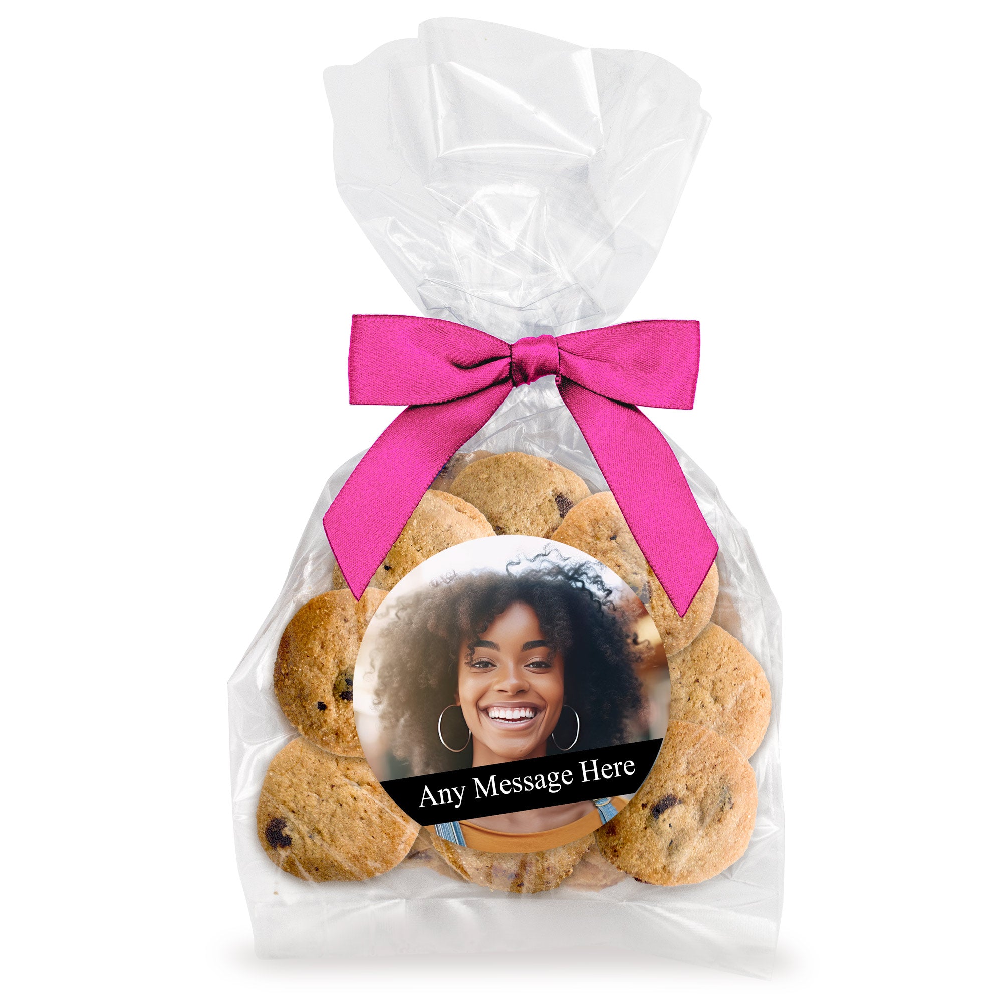 Bite-Sized Chocolate Chip Cookies (3 oz., approx. 24 cookies) W/ Full Color Custom Sticker & Bow Choice - Photo Upload & Message Strip