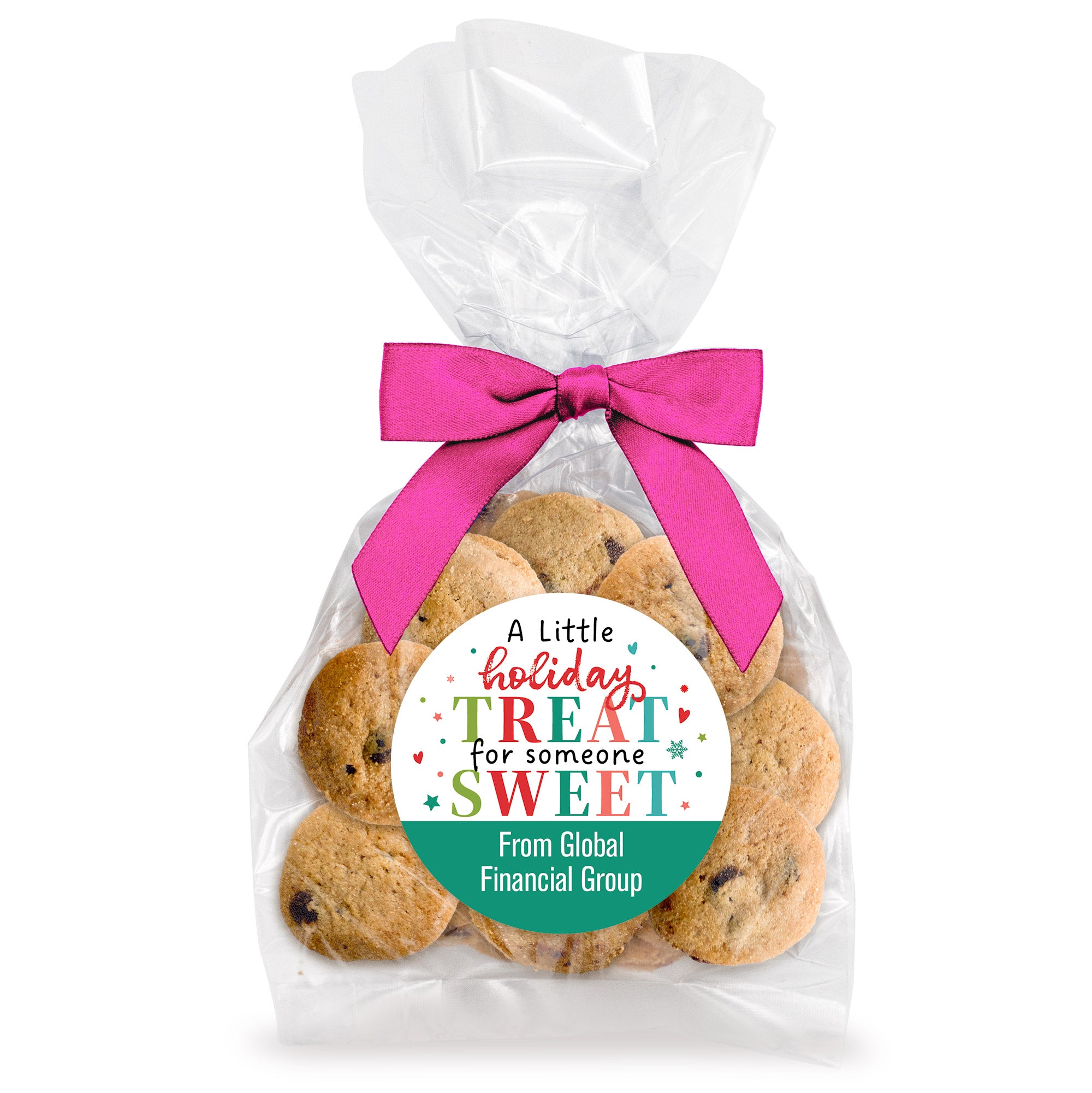 Sweet Treat Holiday - Bite-Sized Chocolate Chip Cookies (3 oz., approx. 24 cookies) W/ Full Color Custom Sticker & Bow Choice