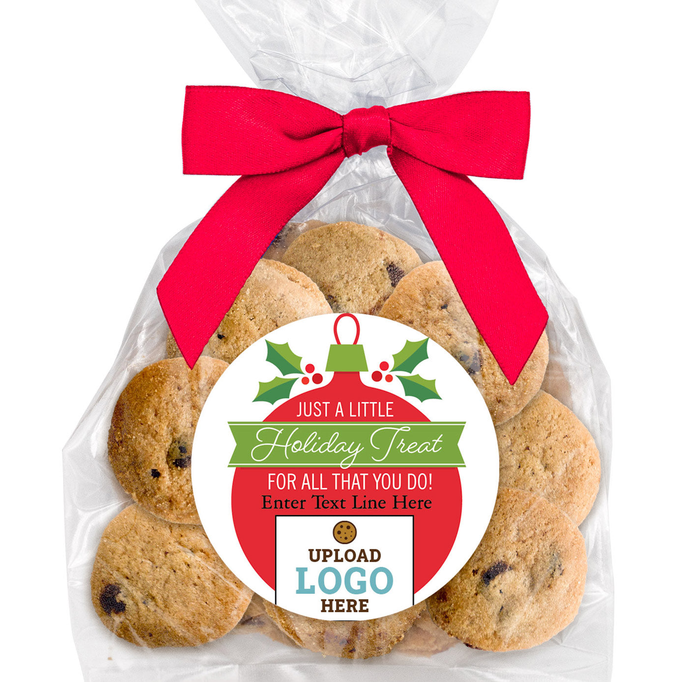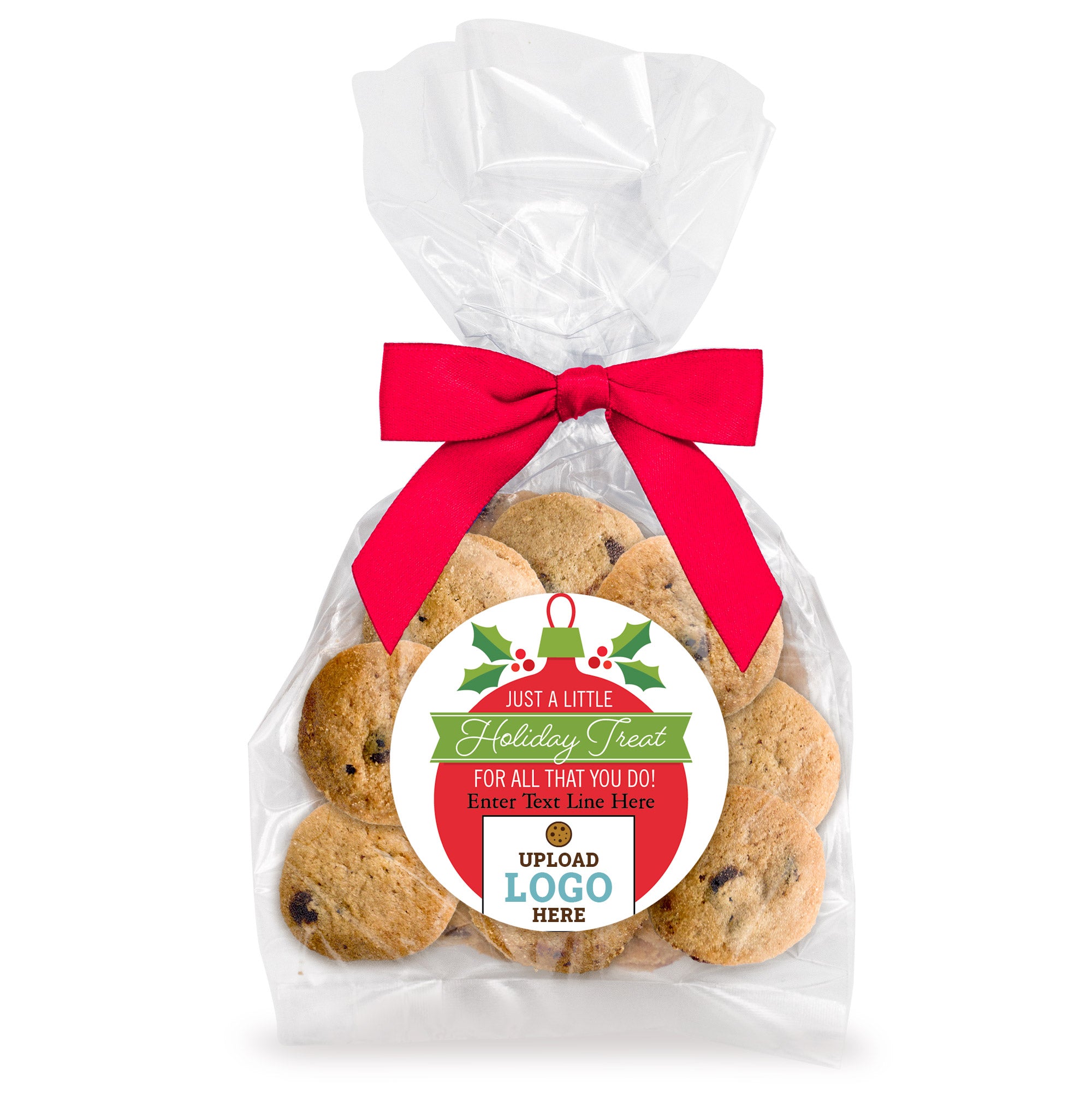 Bite-Sized Chocolate Chip Cookies (3 oz., approx. 24 cookies) W/ Full Color Custom Sticker & Bow Choice - Wreath Logo Upload & Message