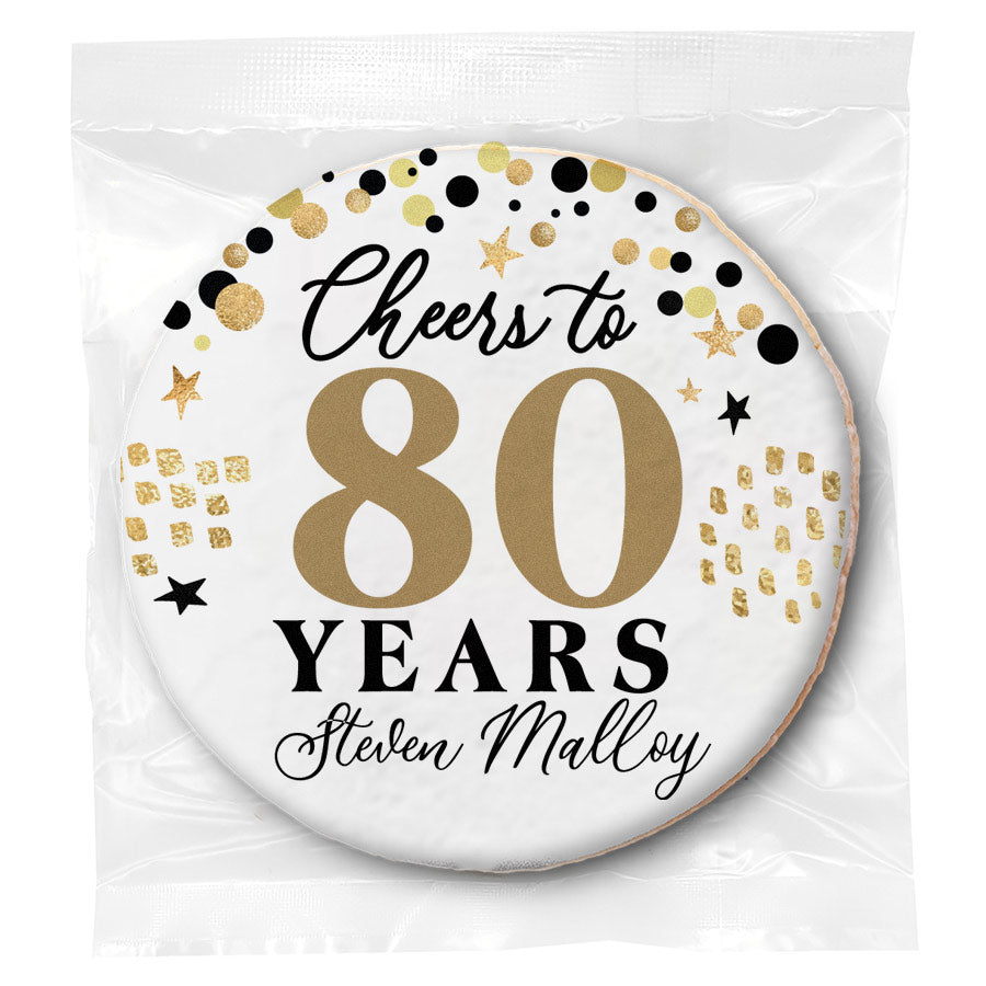 Cheers to "X" Years - 80 (any age) - Gourmet Chocolate Chip Or Variety Pack W/ Full Color Personalized Sticker