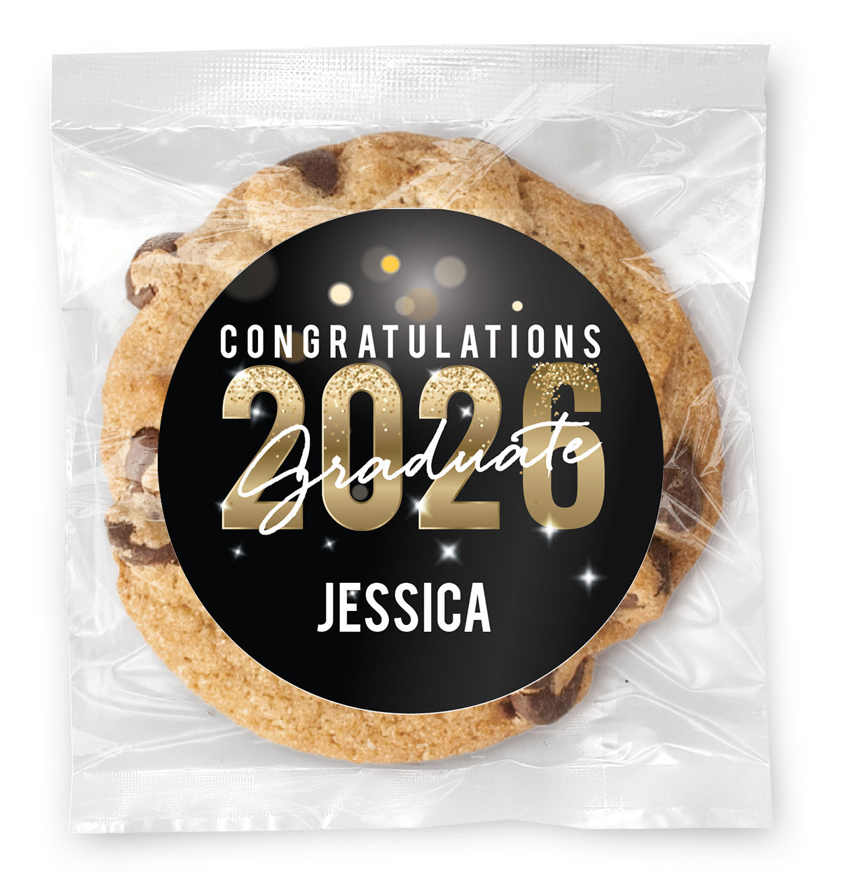 Congrats Gold Sparkle - Gourmet Chocolate Chip Or Variety Pack W/ Full Color Personalized Sticker