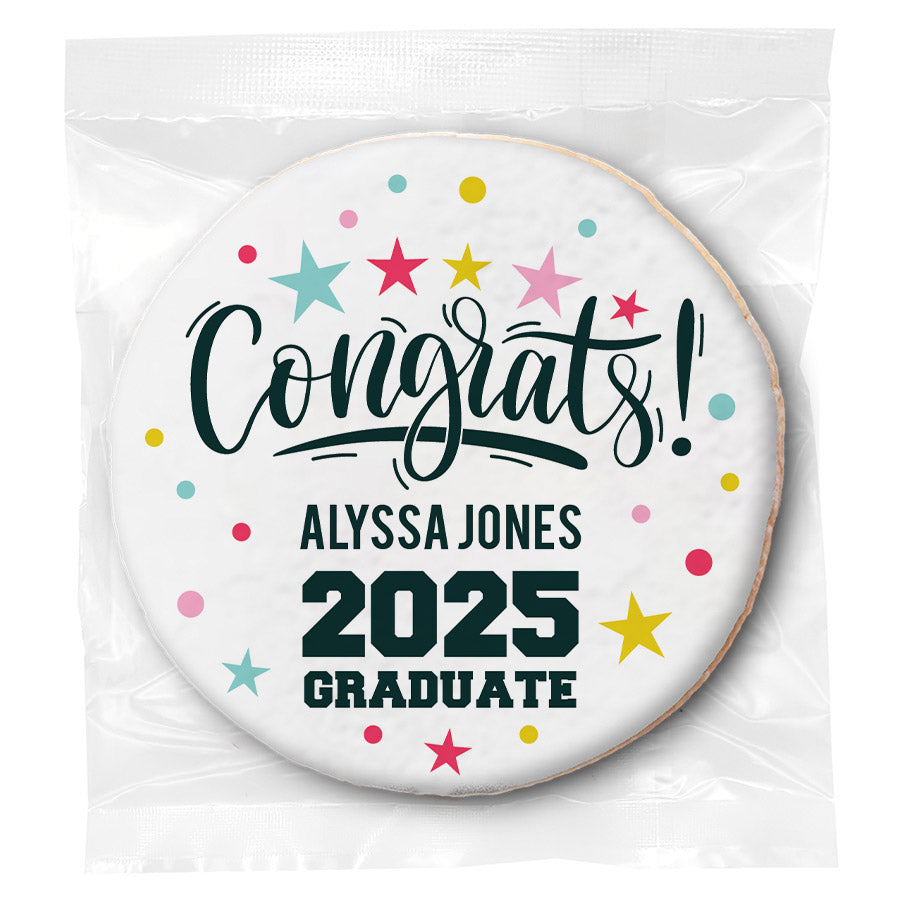 Congrats Grad Colorful Stars - Personalized Direct Print On Round Sugar Cookie