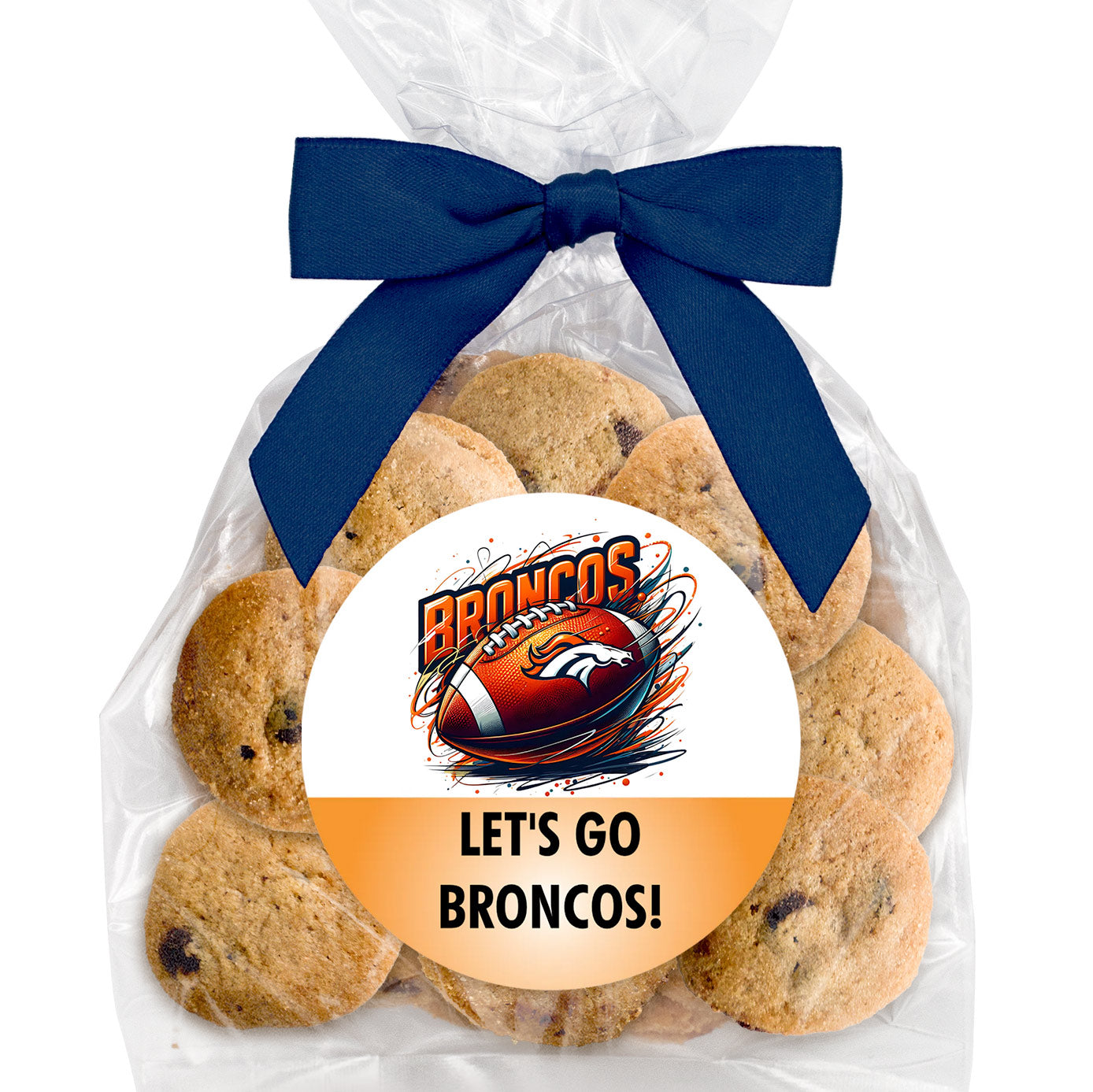 Football Logo Upload & Message - Bite-Sized Chocolate Chip Cookies (3 oz., approx. 21 cookies) W/ Full Color Custom Sticker & Bow Choice