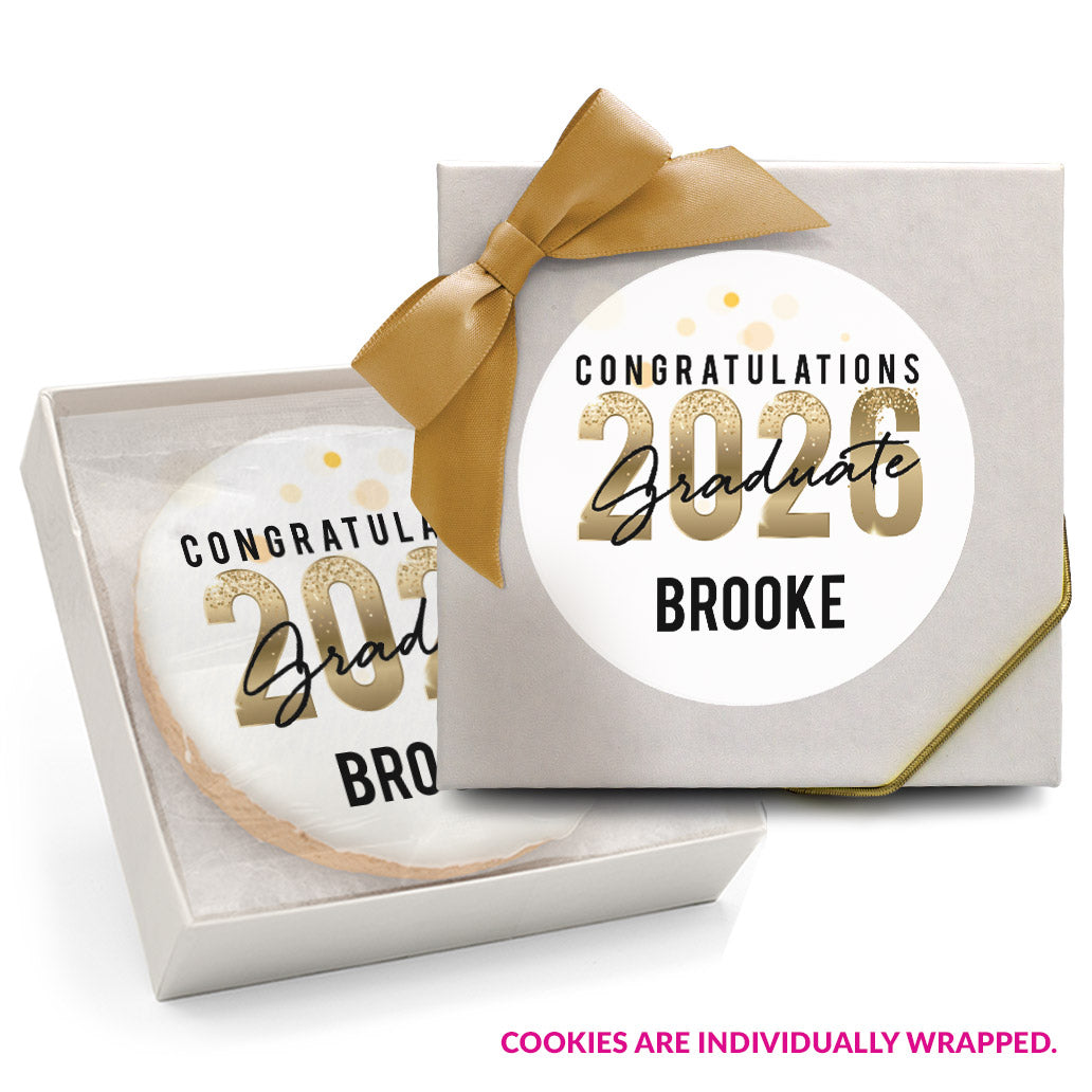 Gold Sparkle Congrats - Gourmet Chocolate Chip Or Variety Pack W/ Full Color Personalized Sticker, Favor Box & Bow Choice