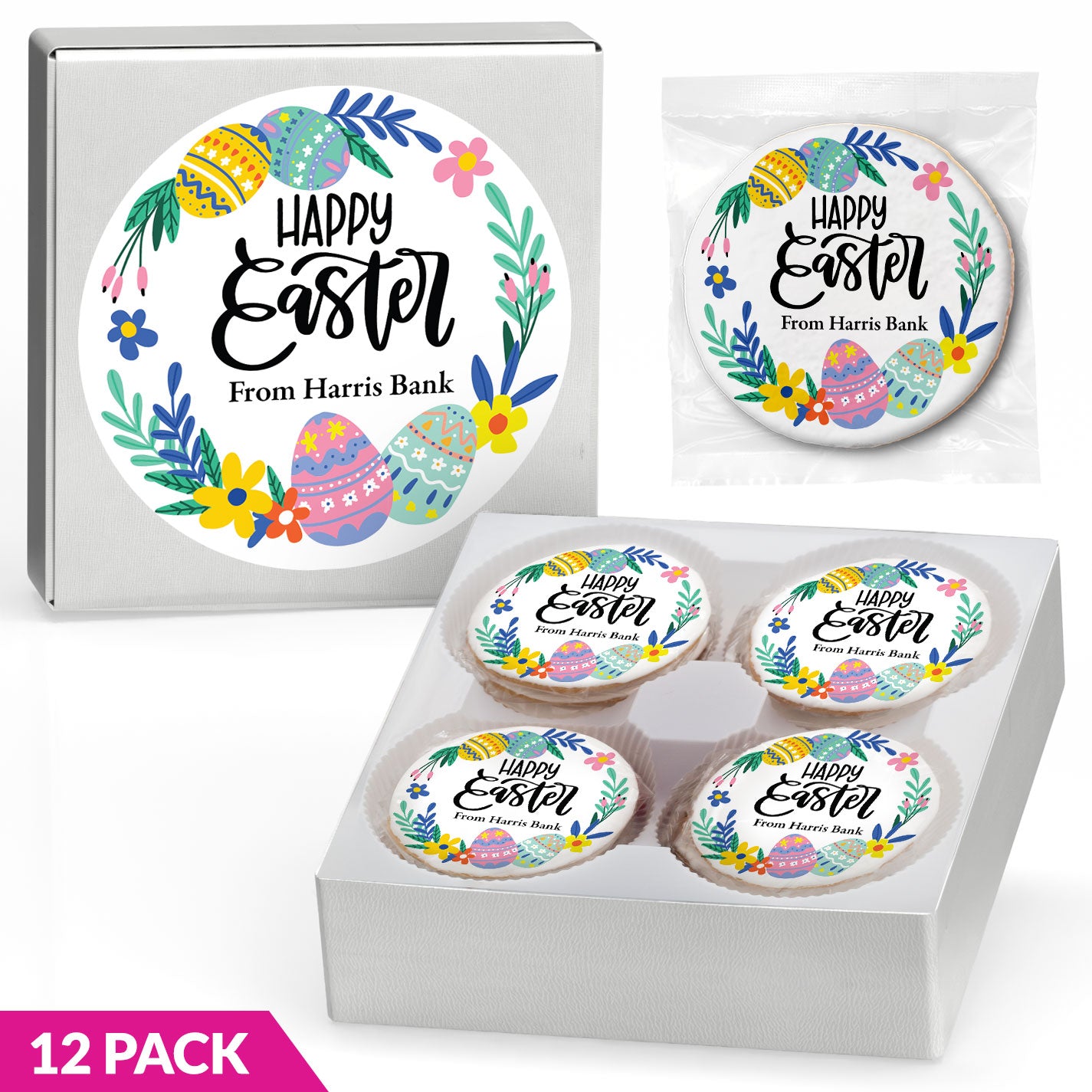 Happy Easter Colorful Wreath - Personalized Direct Print on Round Sugar Cookie Gift Set