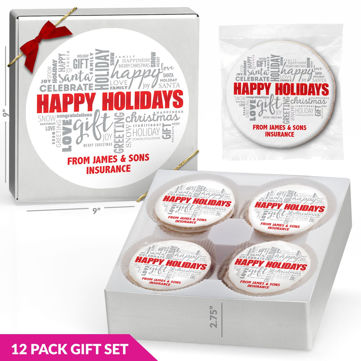 Happy Holiday Words - Gourmet Chocolate Chip or Variety Pack w/ Full Color Personalized Sticker Gift Box