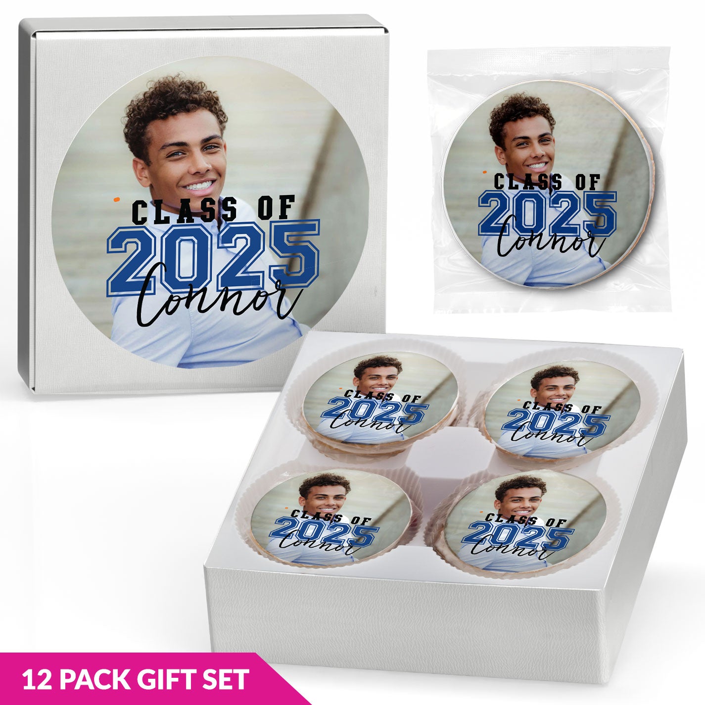 Overlay Photo Grad Cookie - Gourmet Chocolate Chip or Variety Pack w/ Full Color Personalized Sticker Gift Set
