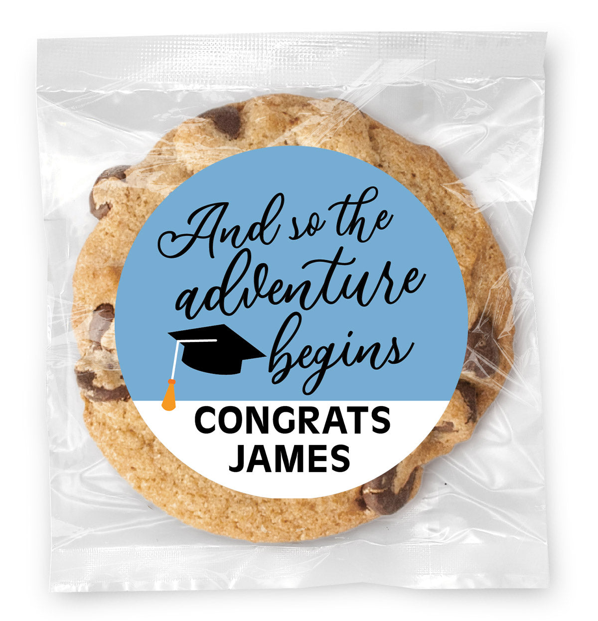 The Adventure Begins Grad - Gourmet Chocolate Chip Or Variety Pack W/ Full Color Personalized Sticker