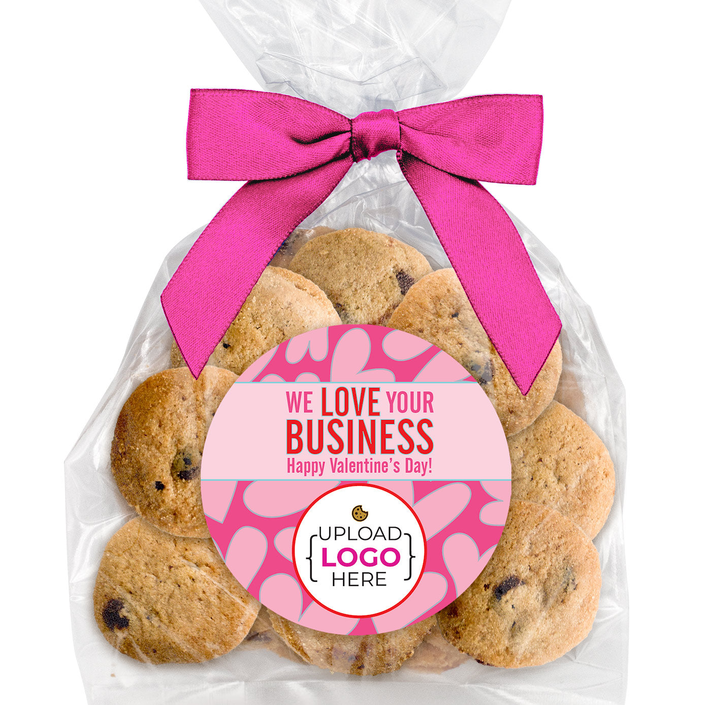 We Love your Business Logo Upload - Chocolate Chip Mini Cookies (3 oz) W/ Full Color Custom Sticker & Bow Choice