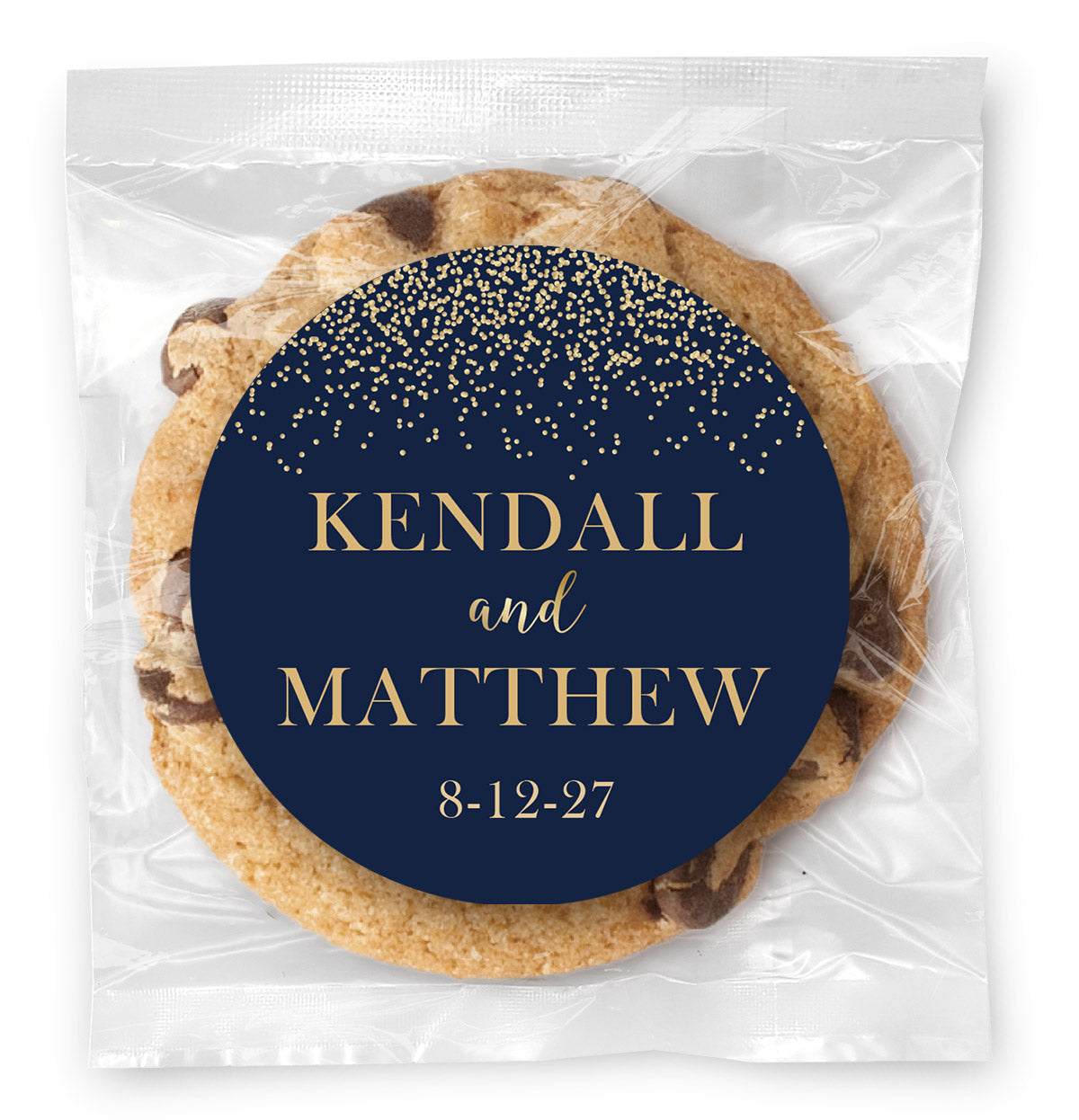 Wedding Golden Names & Confetti - Gourmet Chocolate Chip Or Variety Pack W/ Full Color Personalized Sticker