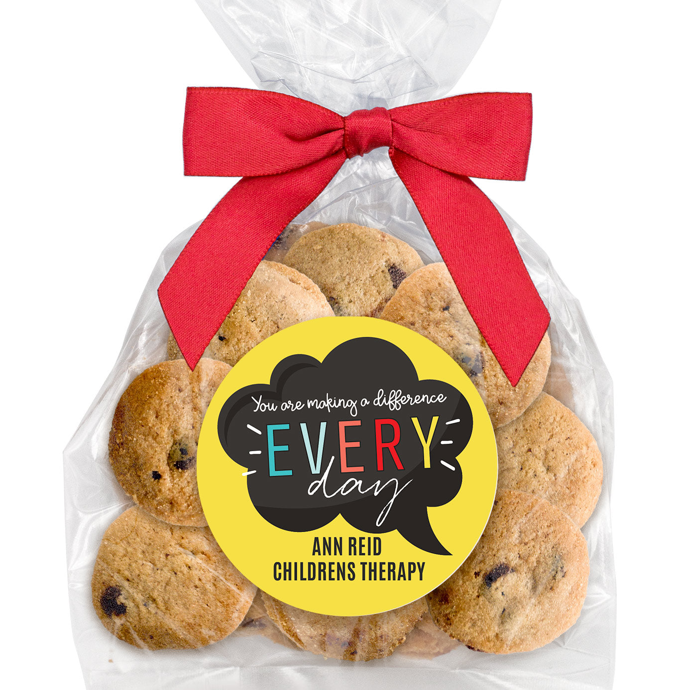 You make a difference every day - Bite-Sized Chocolate Chip Cookies (3 oz., approx. 21 cookies) W/ Full Color Custom Sticker & Bow Choice